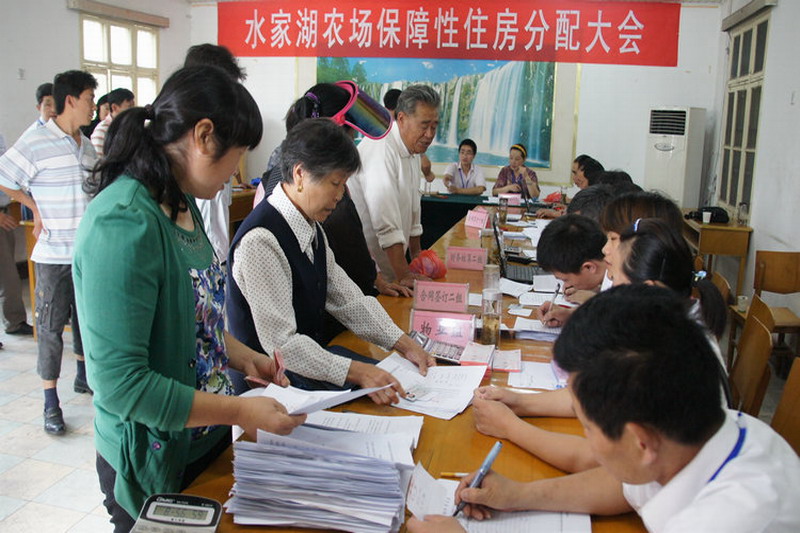 “閆如庭,10號樓1單元202室”。聽到長豐縣公證人員當場的宣布,陪同閆如庭老人一道來抽號分房的女兒閆其美長舒了一口氣。閆如庭是安徽農墾水家湖農場七分場退休職工,拿到房號,這就意味著今年他家能住到場部新建的廉租房了。