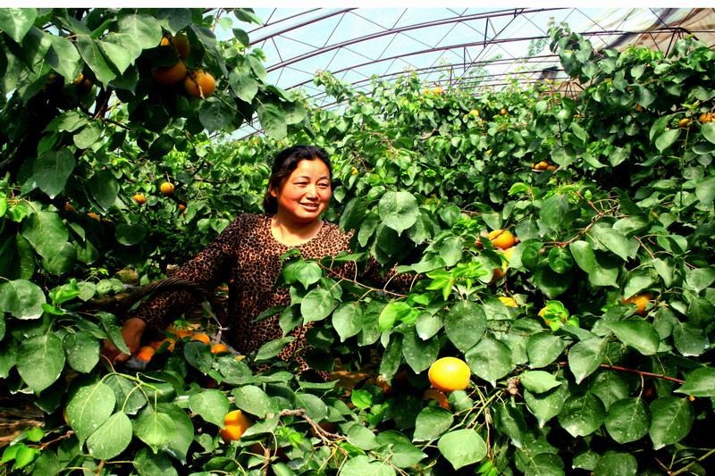她敢于轉變觀念,率先發展設施大棚。自上個世紀九十年代未,一度暢銷價俏的碭山酥梨身價大跌,至2000年,碭山酥梨的生產、銷售陷入低谷,職工收入大幅度下降,企業經濟陷入困局。尋求新的經濟增長點,促進職工增收、企業增效是當時全場面臨的新課題。要發展,必須調整產品結構、轉變經濟發展方式,但如何調、調什么一直是個難題,周仁華同志卻不等、不靠,積極轉身,通過多方考察,認為發展設施大棚生產反季節水果是實現高效的有效途徑,在丈夫的幫助下,于2001年籌集資金,從淮北引進金太陽杏苗木,從壽光學習設施栽培技術,建設一座鋼骨架無支柱的溫室大棚,開始了金太陽杏的栽培生產。