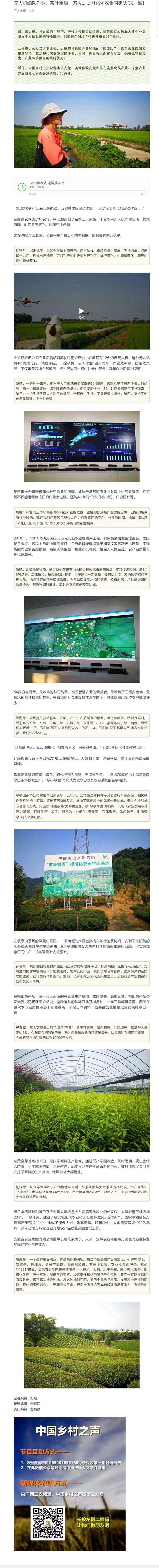 8月26日早上7點30分,中央人民廣播電臺中國鄉村之聲報道了安徽農墾集團公司無人機植保和高效茶園的情況,該報道由央廣新聞記者紀翔采寫。