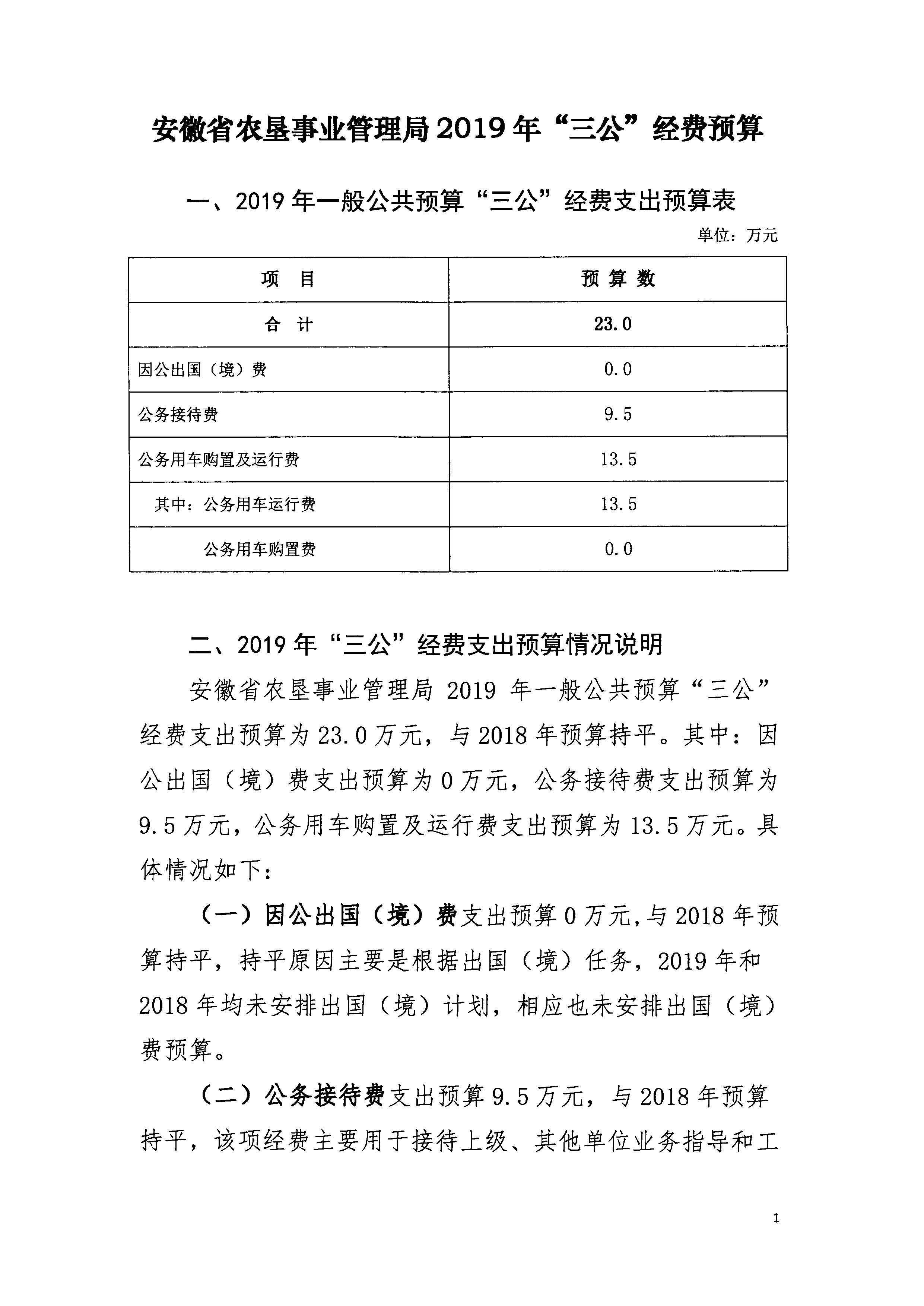 安徽省農墾事業管理局2019年“三公”經費預算
