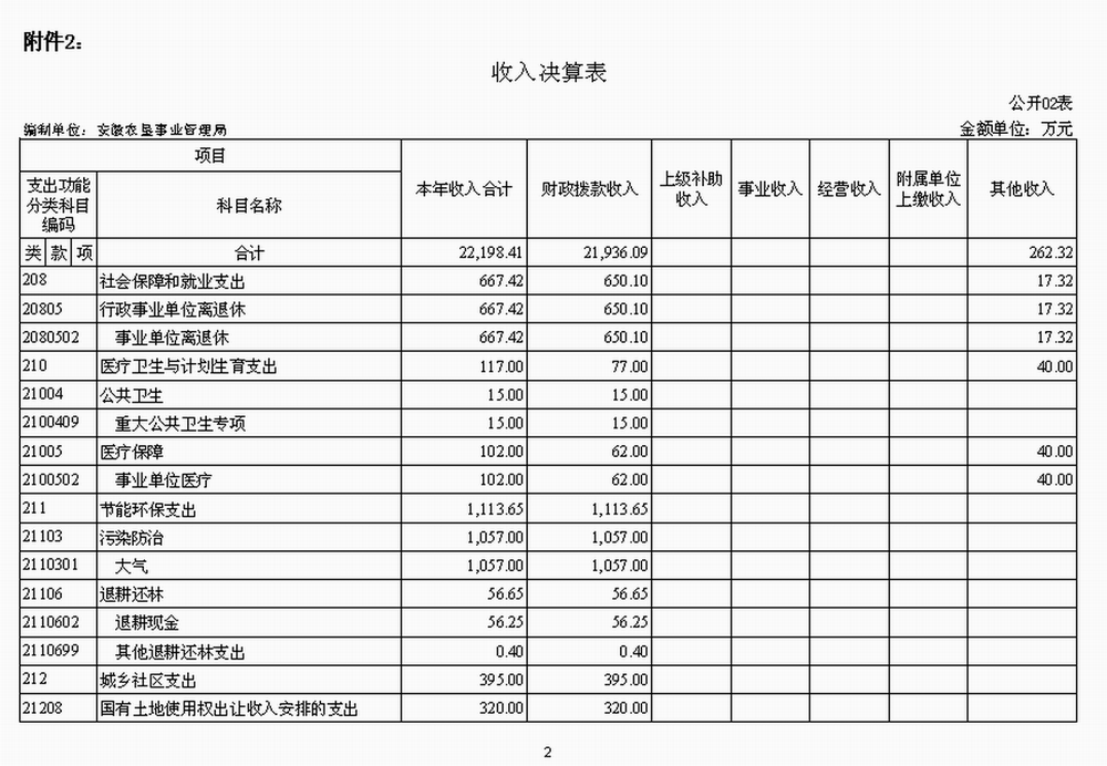 2.安徽省農(nong)墾(ken)事業管理(li)局收入(ru)決算(suan)表