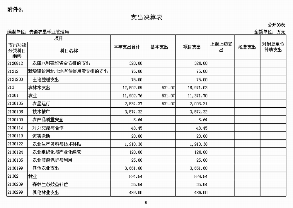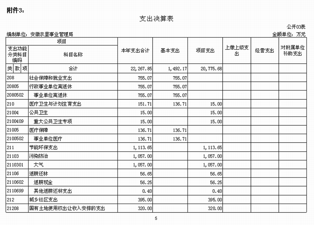 3.安(an)徽省農墾事業管理(li)局支出決算(suan)表(biao)