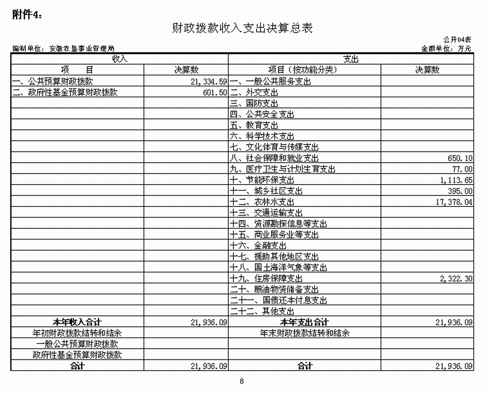 4.安(an)徽省農墾(ken)事業管理局財政(zheng)撥款(kuan)收入支出決算總表