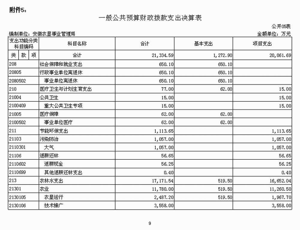 5.安徽省農墾事業(ye)管理局一般公共預算財政(zheng)撥款支出