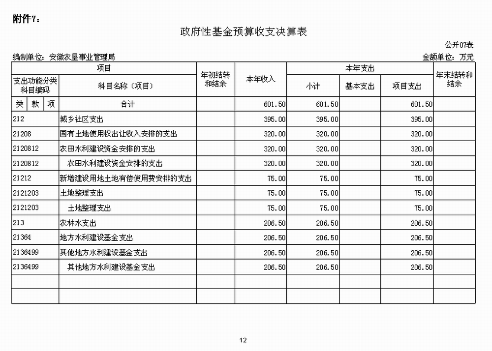 7.安徽省農墾(ken)事業管理局政(zheng)府性基金預(yu)算財政(zheng)撥款收(shou)