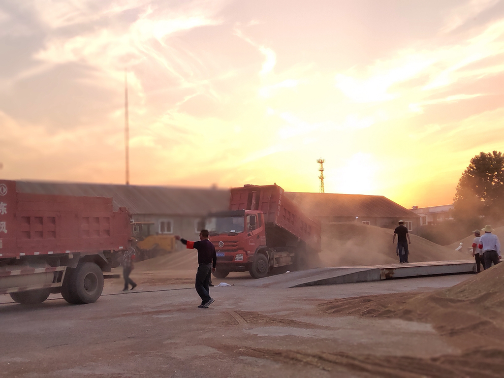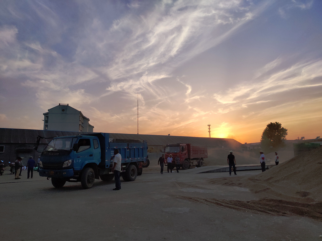 午收(shou)的(de)主打色是金色,成群結隊的(de)大型收(shou)割機從清晨(chen)工作(zuo)到夕(xi)陽(yang)西下,收(shou)割的(de)小麥直接運往(wang)農場(chang)各個農服收(shou)購站(zhan)(zhan)。運糧(liang)(liang)車從上稱、檢(jian)測、卸糧(liang)(liang)到出站(zhan)(zhan)不過十多分鐘的(de)時間,迅(xun)速(su)快捷而(er)有(you)序。(華陽(yang)河農場(chang)公司 包丹鳳)
