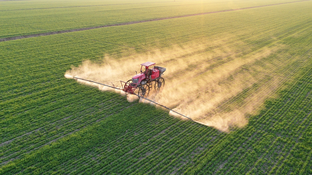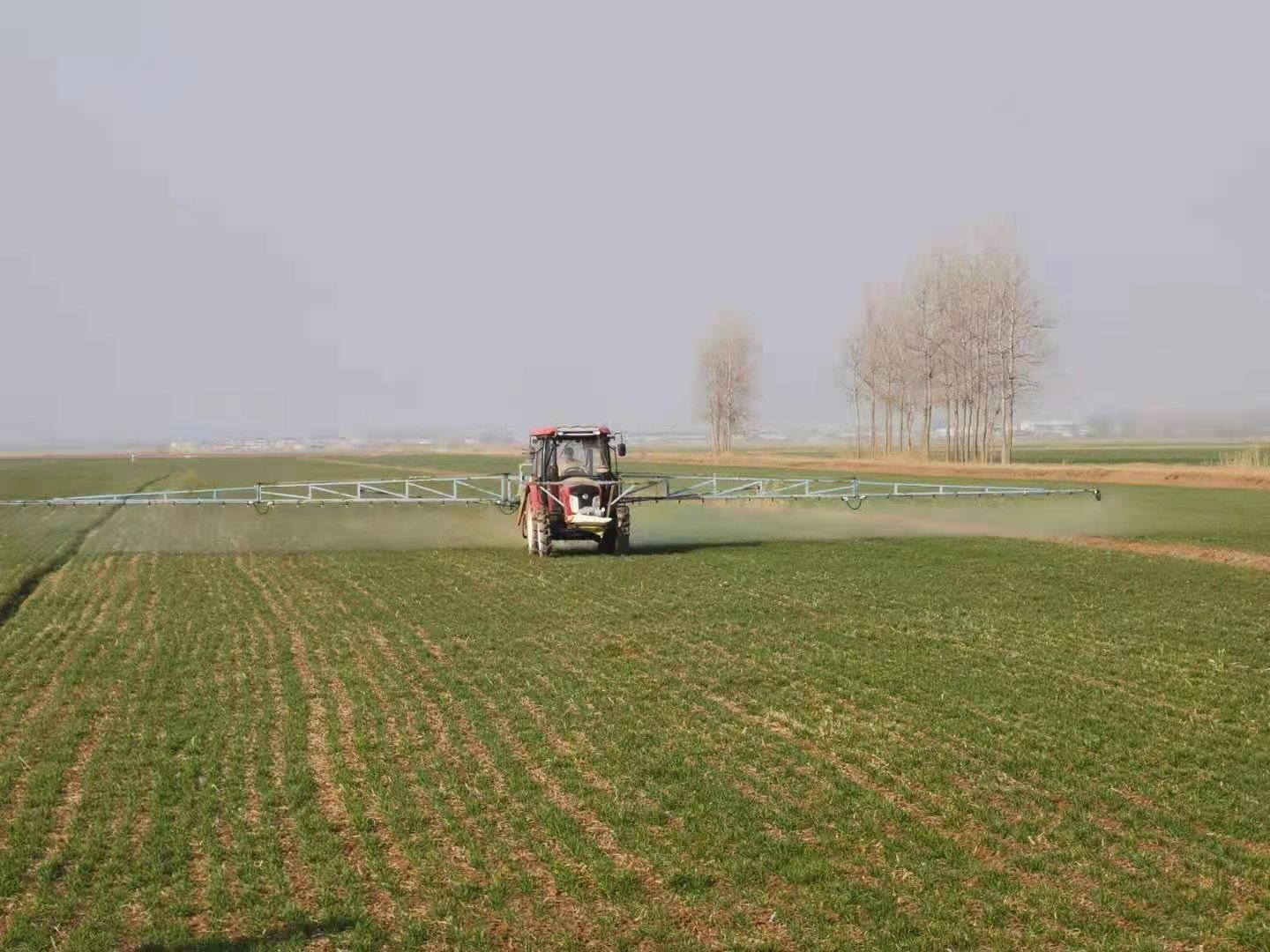 2月4日(ri),華陽(yang)河(he)農(nong)場3萬畝(mu)訂單小麥實施化除作業(ye)。(李(li) 龍 攝)