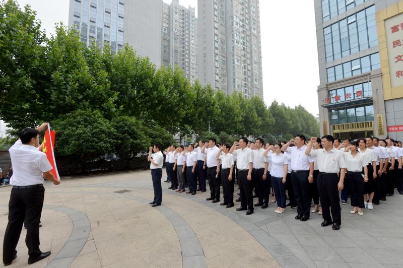 當(dang)天的(de)活(huo)動分三個階段(duan)進行,上午8時許(xu),在集(ji)團公司一樓(lou)廣場,舉行升國旗唱國歌(ge)儀式。在莊嚴(yan)的(de)國歌(ge)聲中,五星紅旗緩(huan)緩(huan)升起。升旗儀式結束(shu)后,在余向東領(ling)誓下,在場150余名(ming)黨員重溫(wen)入黨誓詞,表達為共產主義事(shi)業奮(fen)斗終生(sheng)、做擔當(dang)民族復(fu)興大任時代新人的(de)決心。