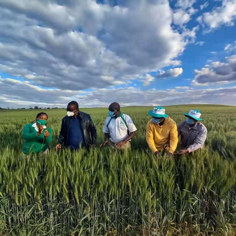 圖為(wei)津(jin)巴布韋農業部專家在皖津(jin)公司查看小麥長(chang)勢
