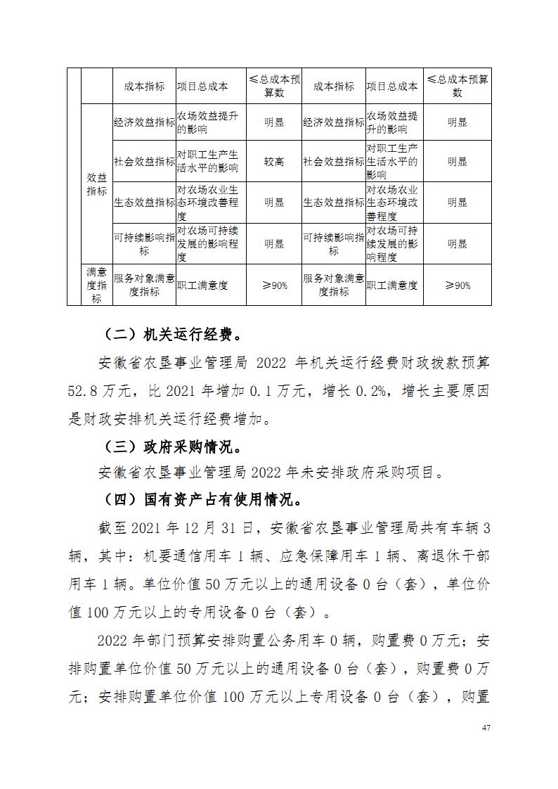 安徽省農墾事業管理局2022年部門預算
