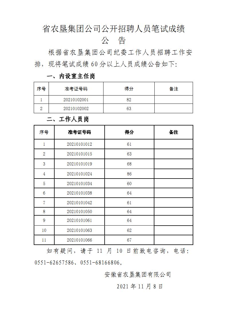 安徽農墾集團:省農墾集團公司公開招聘人員成績公告
