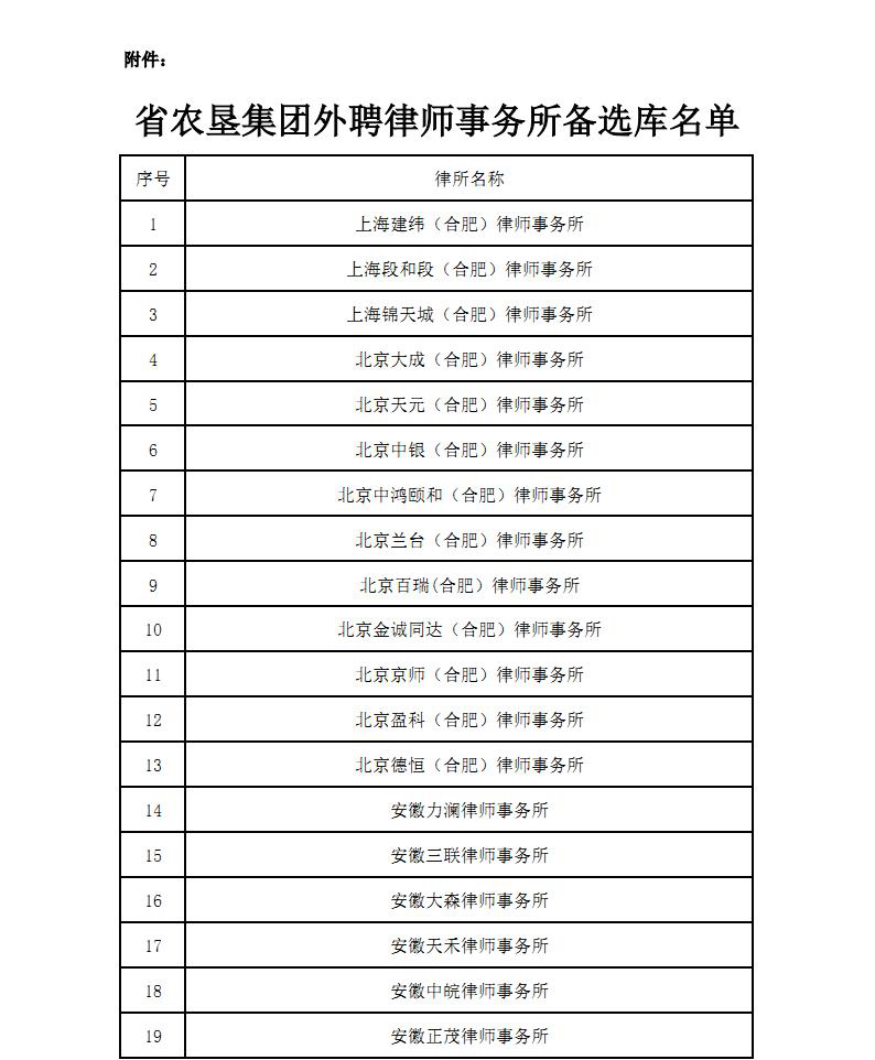 省農墾集團關于公布外聘律師事務所備選庫名單的公告