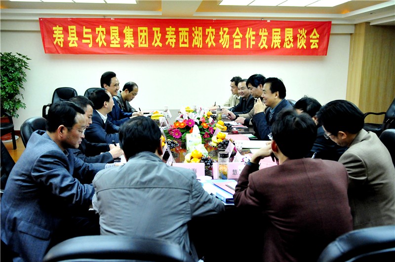 為進一步推進和深化壽西湖農場與壽縣人民政府的合作發展,加強溝通協調解決相關問題, 11月9日下午,安徽農墾集團在合肥召開了“壽縣與農墾集團及壽西湖農場合作發展懇談會”,共商場縣合作發展有關事項。懇談會由省農墾集團副總經理程軍和壽縣縣委書記張緒鵬共同主持,壽縣縣委常委、副縣長許支祿及相關部門負責人,壽西湖農場場長劉國強、副場長蔣國君,省農墾集團有關部門負責人參加了會議。