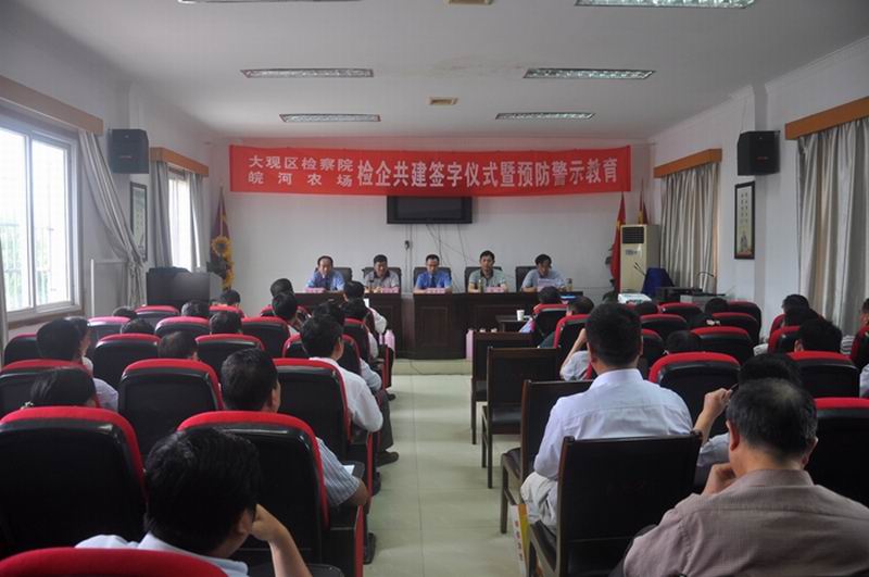 會(hui)(hui)上宣讀(du)了(le)檢企共建預防職務(wu)犯(fan)罪(zui)平臺協議書(shu),讓與會(hui)(hui)同志(zhi)對檢企共建工作(zuo)有了(le)一個清(qing)晰了(le)解,場黨(dang)委書(shu)記胡興兵、吳才(cai)廣在(zai)共建協議書(shu)上簽字。隨后,全(quan)體(ti)同志(zhi)聽取了(le)區(qu)檢察官所(suo)作(zuo)的(de)預防職務(wu)犯(fan)罪(zui)專題講座,觀看(kan)了(le)警(jing)示教育片——黃梅戲情景短劇《悔不當初》。(陳松泉)