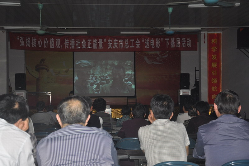 4月28日,安慶市總工會“送電影下基層活動”走進皖河農場,為農場職工群眾放映了愛國主義影片《我的長征》,弘揚核心價值觀,傳播社會正能量,營造了慶祝“五一”、構建和諧的良好氛圍,豐富了農場人的精神文化生活。(徐麗燕)