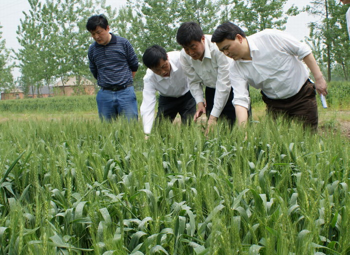 ,滁州市農委總農藝師李廣厚率領市種子管理站及天長市農業專家來大壙圩農場檢查招標種子項目工作。殷文格副場長等陪同李廣厚一行深入大田,實地查看了揚麥