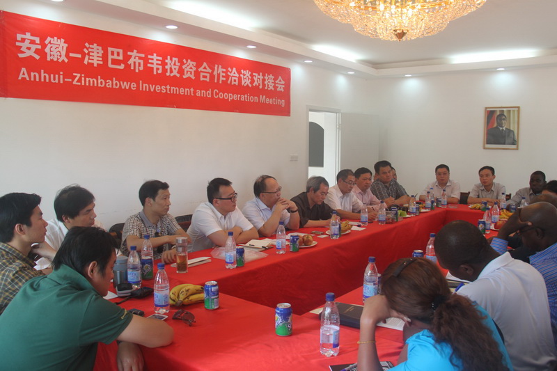 考察團一行在皖津公司舉行“安徽——津巴布韋投資合作洽談對接會”。依柯阮姆巴少將代表津國防部歡迎安徽客人到訪,并介紹了津巴布韋經濟社會發展的主要情況,面臨的困難與機遇,有望合作開發的重點領域,以及安徽農墾皖津項目存在的優勢與經驗。盧宏世在發言中說,中津友好淵源、各自現實國情決定了雙方合作的必要性和可行性,去年中國對非投資中,安徽省占了10%,足見對非洲及津巴布韋投資的重視。他希望津國防部給予更多關注與支持,并表示安徽省商務廳將一如既往地引導和幫助更多皖企赴津發展。對接會后,考察團實地察看了皖津公司合作開發項目和所屬農場玉米、大豆、煙草生產及育種基地,充分肯定皖津公司在當地降雨推遲一個月的氣象條件下,通過晝夜不停灌溉完成了雨季作物播種且長勢喜人的良好成果。