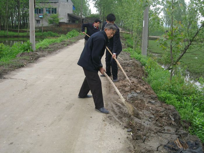 皖河農場為水泥路肩培土保村道暢通