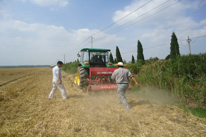 潘村湖、方邱湖兩場交流秸稈粉碎播種一條龍作業經驗