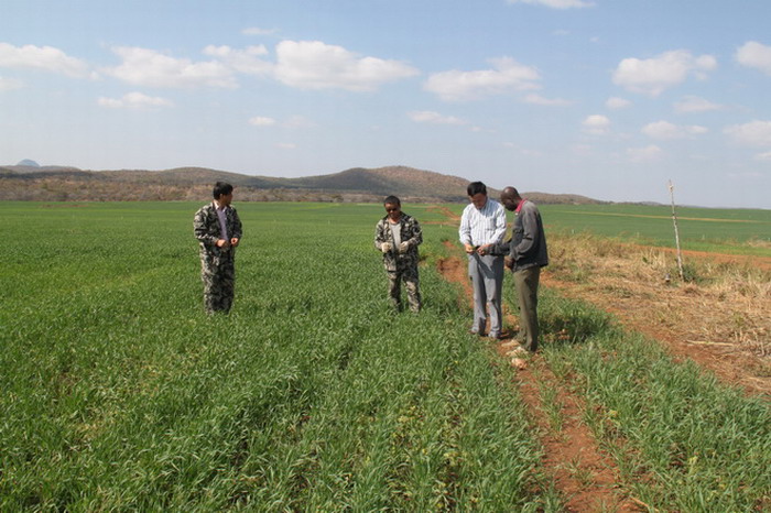 圍繞當前工作,韓大鳴在講話時首先肯定了SISI農場近階段取得的工作成績,他說,皖津公司入駐SISI農場僅僅兩個多月,在大家的一致努力下,順利完成了402公頃小麥種植任務,田管工作穩步推進,追肥化除效果初顯,這充分說明我們的努力和付出是值得的。就下一步工作,韓大鳴強調,要“抓兩頭帶中間”,抓好優勢地塊和弱勢地塊這“兩頭”,前者主要檢驗我們產量水平的最高值,后者主要體現我們的管理方式是否奏效,不拖產量的后腿,更重要的還是要帶起中間地塊,這是產量的主體,可以提升整體產量水平。韓大鳴要求,要時刻掌握小麥生長情況,積累田管經驗,為來年生產提供科學依據;要超前謀劃種植結構調整,大膽探索嘗試,針對津巴布韋的客觀條件,用好當地優勢資源,多措并舉,主動應對,最大限度地提高農場經濟效益;要積極思考下步工作安排,如收獲、運輸、雨季種植等,避免臨陣磨槍、慌亂被動。關于未來發展,韓大鳴指出,重點是要在管理創新和經營思路上下功夫,首先,要不斷創新管理模式,輸出先進管理理念,充分利用當地人才社會資源,理順管理鏈條,降低管理成本,同時,要結合當地法律法規和風俗禮儀,搞好制度建設,在制度本土化的基礎上邁向全球化;其次,要不斷創新經營方式,積極探索嘗試走以種植業為主、多業并舉、產業化發展的路子;第三,國際化人才要有國際化的眼界和思維,我們的經營管理團隊要提高自身綜合素質和心性品性,加強內部團結和外部聯絡,形成工作合力和向心力。