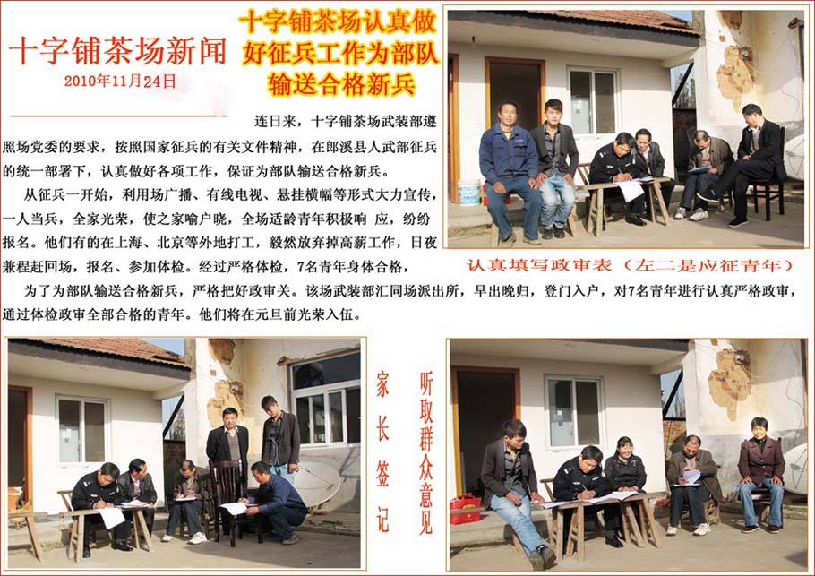 十字鋪茶場認真做好征兵工作為部隊輸送合格新兵