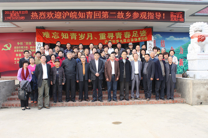 滬皖知青代表將一面書寫著“憶青春歲月、感故鄉溫情”的錦旗贈送給茶場以表留念。茶場老同志蔣浩田即興賦詩詞一首:最憶是“知青”,昔日同心建茶場,血汗共鑄真摯情,能不憶舊情。四十年后重聚首,各自兒孫繞膝行,時變遷,友誼存,相見無語淚滿襟,常相聚,返故園,回憶使人變年輕,他年若再重會面,必然是,滿目青山夕照明。