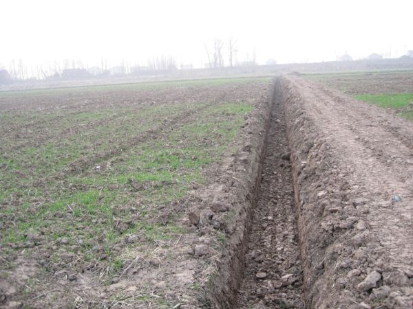 圖一為油菜地溝渠施工場面 圖二:昔日閑田 今日麥田