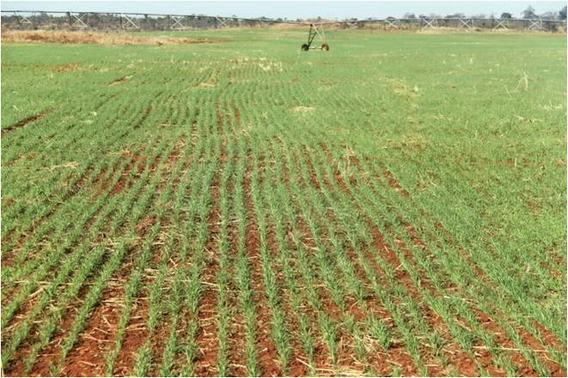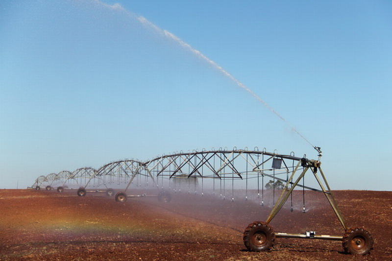 皖津公司繼完成小麥播種任務之后,又奏起了噴灌的沖鋒號角。自5月17日開始,皖津農場邊播邊噴邊排查問題,但由于地下管道年久失修,隱患之處很多,直至5月31日,皖津溫亞尼農場地下管道漏點問題才逐個排查搶修完畢,南北兩個泵站及管路基本恢復工作狀態,各級泵組工作正常,狀態良好,三級提水暢通。一時間,田間大型噴灌機與地面管道同時起噴,陽光下劃出一道道美麗彩虹,繁星中點綴出鉆石般的剔透。