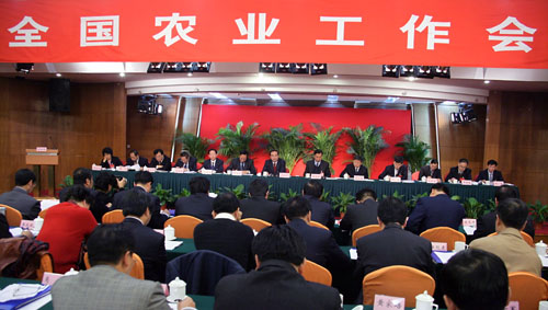 12月22日至23日,全國農業工作會議在北京召開。會議總結了2007年農業農村經濟工作,部署了2008年工作。農業部部長孫政才強調,各級農業部門要深入貫徹落實科學發展觀,全面落實黨的十七大及中央經濟工作會議、中央農村工作會議精神,堅持走中國特色農業現代化道路,切實加強農業基礎建設,確保農產品有效供給,促進農民持續增收,實現農業農村經濟又好又快發展。