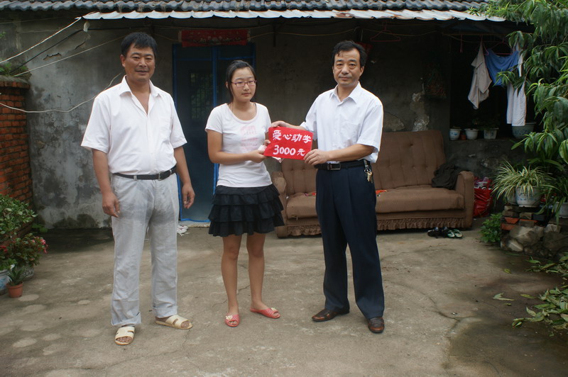 在新學年開學之際,大壙圩農場工會主席楊朝幸將3000元“愛心助學”款送到剛剛考上大學的農場職工崔海軍女兒手中,同時勉勵她要勤奮學習,練好本領,將來報效國家,回饋社會。