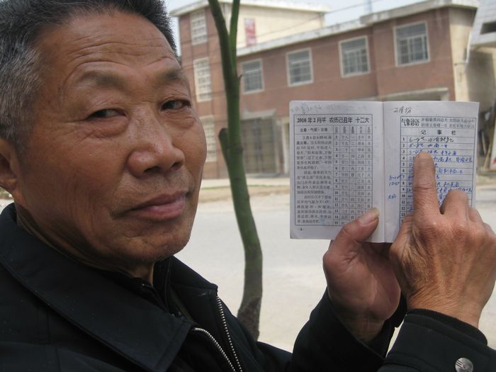 8年來,他每天堅持收看安徽電視臺和安慶電視臺的天氣預報節目,及時在農事歷書上以表格方式記下每天的天氣實況。他平時還注意將每年的天氣變化進行比較,以便安排農業生產,周圍的農工和農民也經常向他請教相關氣象知識,他被當地人成為“氣象農工”。