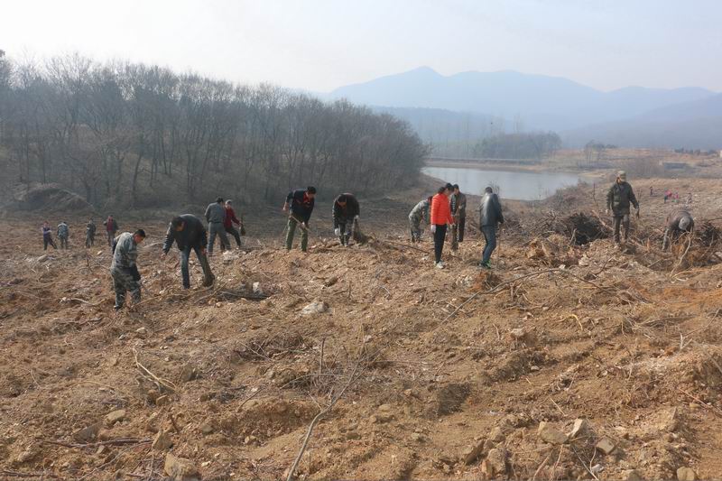 陽春三月,春光明媚老嘉山。近日,在白米山農場月牙湖水庫坡地,場領導邱達、張華平、王陽春、王仕超、周尤馬率機關及分場干部、護林員共60多人到這里參加義務植樹。