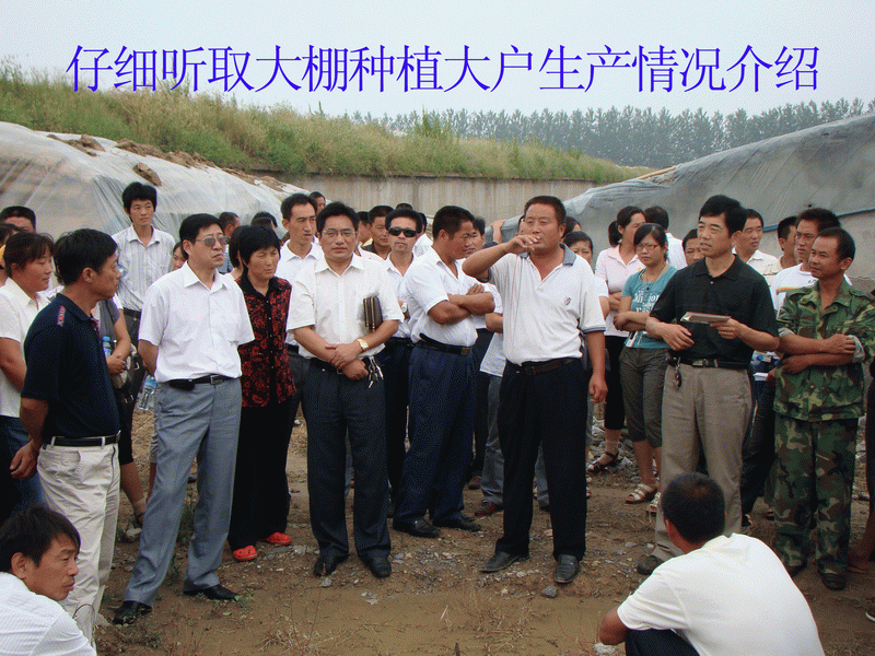 2009年8月10日,夾溝農場組織100戶身份田高效經濟作物種植報名戶,前往宿州市王圩、西溝、湯家等大棚蔬菜連片種植區考察學習。場領導溫廣信、孫家平、牛泉清等帶隊考察。