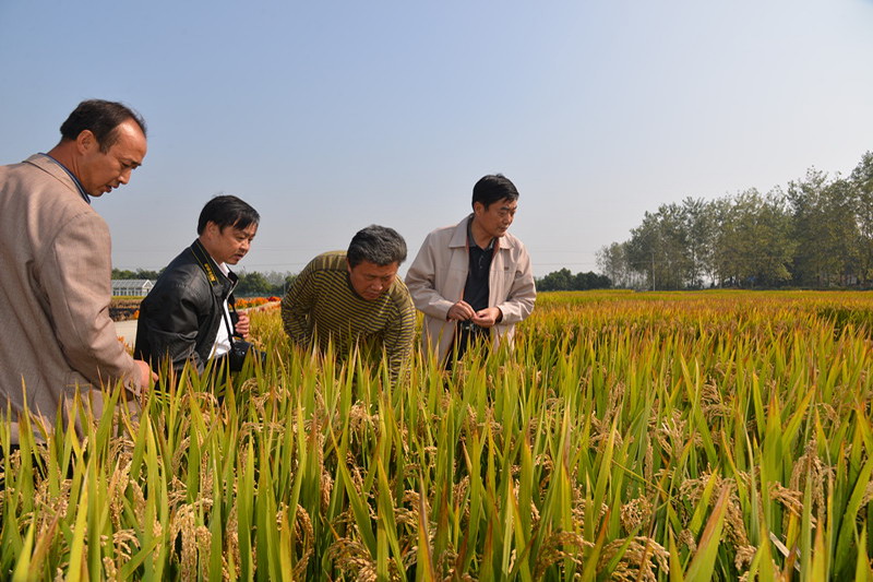 大壙圩農場水稻品種時下正值收獲期,是深入了解新品種田間表現和特征特性的最佳時期。10月22日,滁州市農委總農藝師李廣厚、育種專家黃自安一行考察了農場農科所水稻新品種。