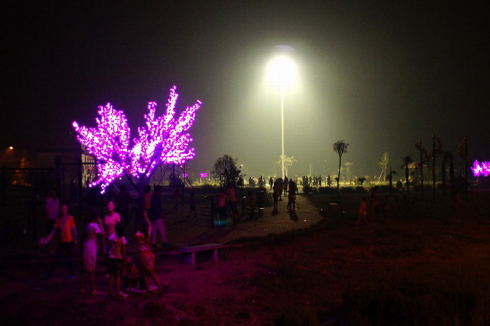 6月6日晚,龍亢農場鎮區廣場上新安裝了高桿燈和六棵桃花樹燈,點亮了職工群眾夏夜新的生活。巨大的高桿燈矗立在廣場中央,燈光如銀,銀輝傾瀉;六棵桃花樹燈散布在廣場的三個拐角,每兩棵相伴相依,燈光妖嬈,繾綣纏綿。撩人的景觀燈光交融在廣場周邊的路燈光里,構筑了一副華美的鎮區夏夜景觀,人們在這美輪美奐的時光和燈光里總能找到屬于自己的歡樂:一群女職工們在高桿燈下翩躚起舞,舞動出了和諧華章;老年人在燈光下悠然自得地散步,愜意感受著幸福美滿的暮年生活;小朋友們圍著桃花樹追逐嬉戲,在這個快樂時光里不時發出天真無邪的笑聲……