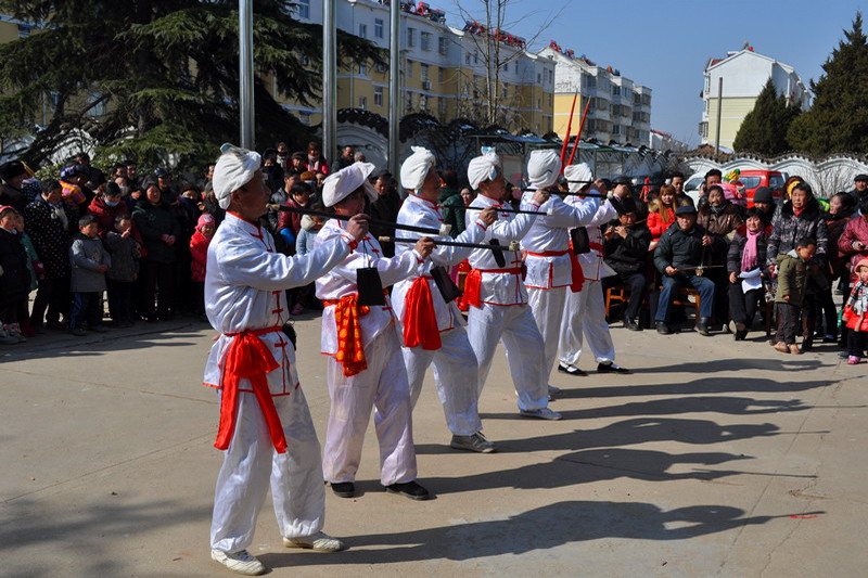 演出節目既有當地傳統的跑旱船、擔花挑、打錢桿、舞腰鼓,還有“六老漢頌黨恩”、“兩夫妻趕集逛新城”等群眾自編的說唱節目,展現了當地富有濃郁特色的鄉土文化,以廣大群眾喜聞樂見的文藝形式唱響了改革開放好、新農村建設好的時代主旋律。
