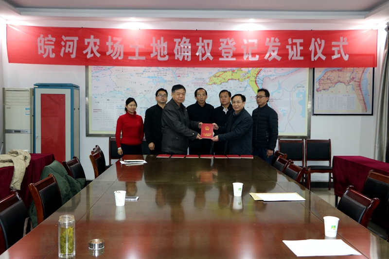 經墾地主管部門協商一致,確定皖河農場國有土地使用權證由懷寧縣國土局不動產中心登記發放,農場緊抓時機有效對接,及時提交確權發證所需資料,按場區地形及主干道分布劃分11塊宗地制作國有土地使用權證,總面積約7115萬平方米,其中農地面積約5696萬平方米,最終于2017年底在安徽墾區率先一次性完成土地確權發證。(徐麗燕)