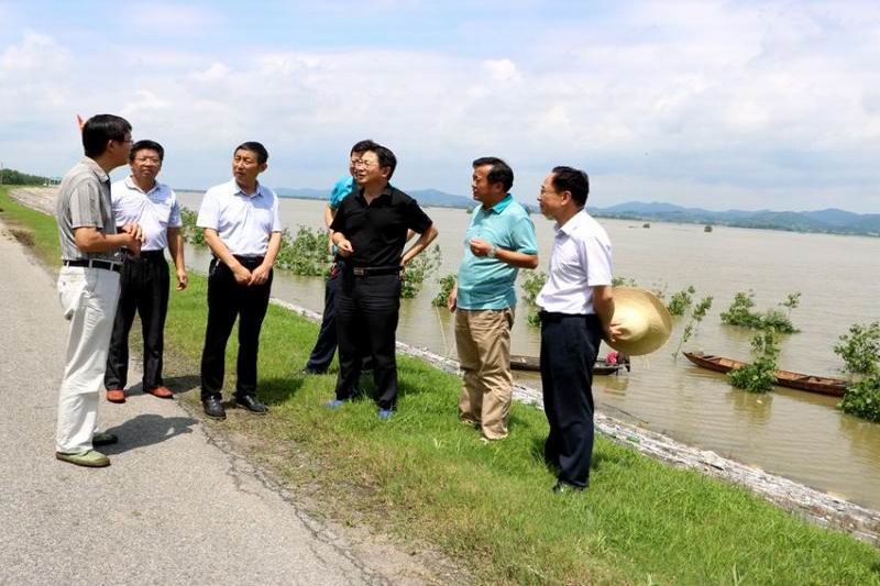 劉超、李家堂一到皖河就直奔長江同馬大堤農場段,看望慰問了堅守防汛一線的干部職工,實地查看了水情汛情和重點險工險段,在受淹水稻田、新河排澇站、糧庫建設工地等現場進行了具體指導。