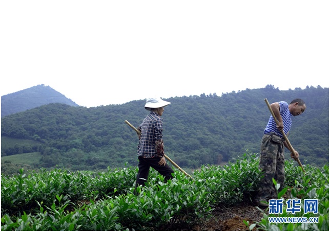 臨近中午11點,敬亭山茶場兩位茶農仍在山坡上揮鋤頭給茶樹松土,隨后撒入有機肥料。他們承包了二三十畝茶園,腳下的白茶林是最近兩年才簽下的合同。