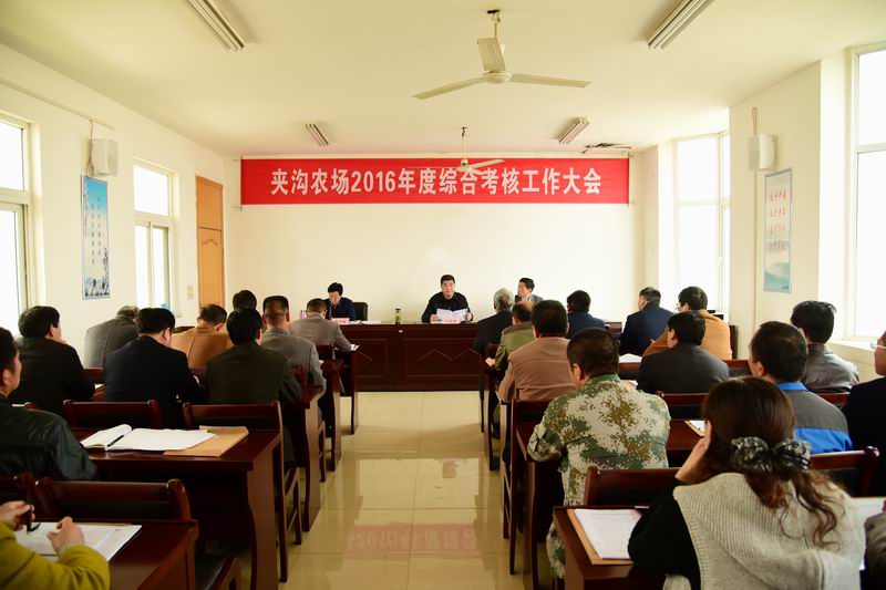 會上,王良貴作了考核動員講話,裴學普對考核工作提出了具體要求,溫廣信代表夾溝農場黨委班子作了2016年度領導班子抓發展和黨建工作總結報告。