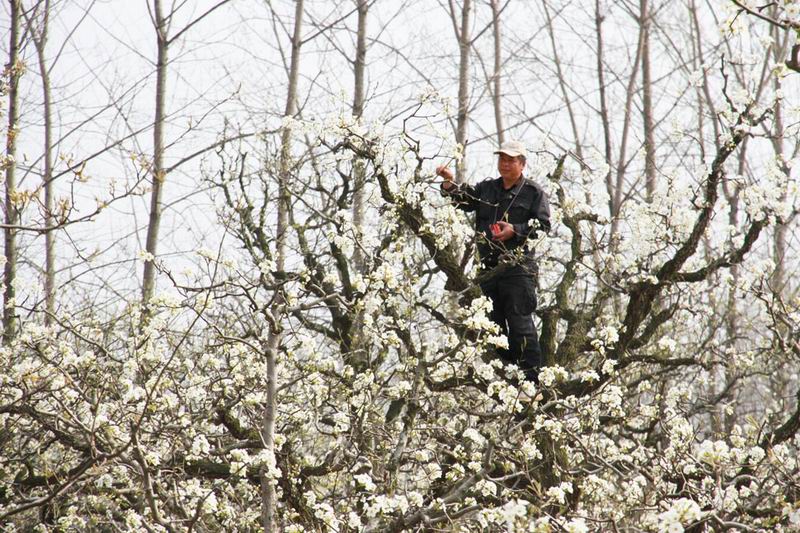 連日來,碭山果園場職工抓住最佳時機進行授粉,梨園里一派繁忙景象。據該場果樹專家介紹,梨花自花不孕,只有在盛花期進行人工授粉,才能保證坐果率和優果率,場里上月底進行了動員部署,制定工作方案,做好管理服務,指導職工授粉,預計全場梨花授粉工作6日即可結束,保障了“翡翠牌”酥梨名果高產增收。(魏曉清等)