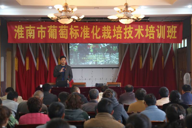 集訓中,淮南市果樹站站長史樹仁以“巨峰”品種為例,主要講授了葡萄標準化栽培技術及發展前景,并結合去冬雪災凍害造成部分葡萄至今不萌芽的問題,為種植戶給出了解決方案。安徽元貞葡萄幫總經理丁樹洪結合豐富的生產管理經驗,著重講解了葡萄施肥、病蟲害防治等關鍵技術要點。課后,兩位專家帶領學員走進農場葡萄園,現場進行了技術指導和釋疑解惑。