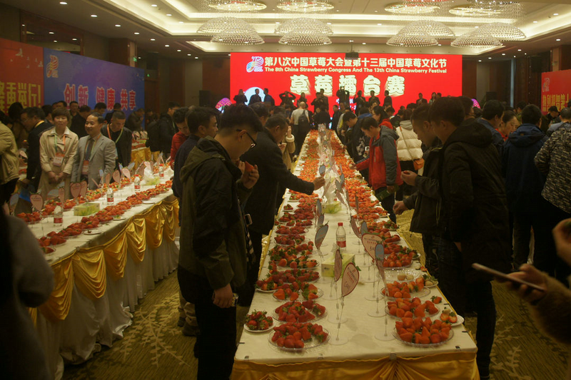 大會設置的精品草莓擂臺賽格外引人關注,全國各地推薦1000多個名品草莓參賽,業內權威專家從草莓果型、口感、甜度等方面進行品鑒,評選出各個單項獎。水家湖農場選送的“紅顏“、“隋珠”牌草莓參加打擂,勇奪“兩金一銀一優”佳績。