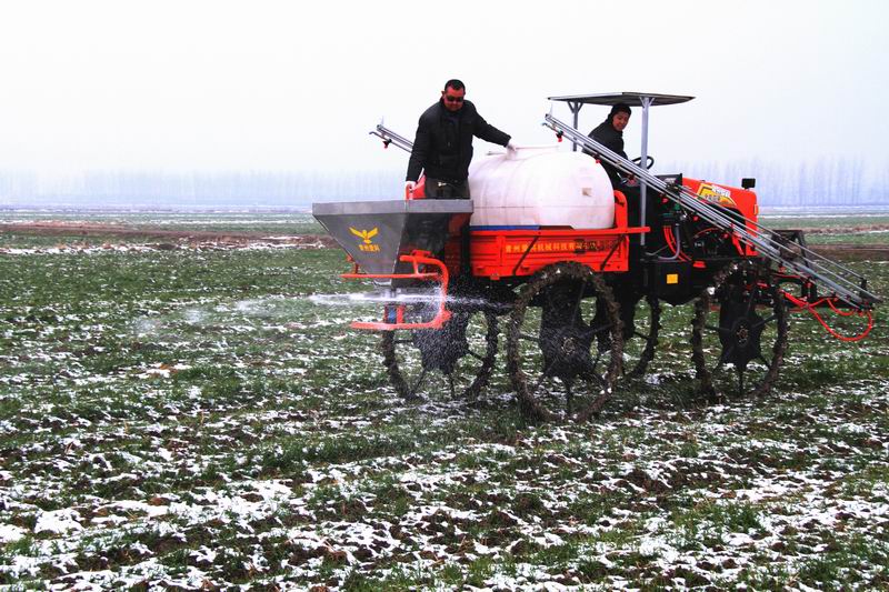 2月8日,安徽農墾龍亢農場一家庭農場職工正在冒雪用高地隙植保機給小麥追施促壯肥。目前,該農場搶抓農時,組織開展小麥開春田管。截至當晚,全場3.5萬畝小麥全部追施了促壯肥,達到了促壯、促分蘗的作用,為小麥豐產打下堅實基礎。(安徽日報2017年2月10日02版,李峰攝)
