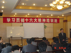 兩期培訓班分別有丁俊先董事長、田文俊總經理做 培訓動員。安排省十六大宣講團方文華宣講黨的十 六大精神,省委黨校副教授郝欣富做《加強黨的執 政能力建設,提高黨的領導水平和執政水平》專題 講座,省委黨校副教授汪興福做《抓住機遇,全面 建設小康社會》專題講座,收看了中央黨校教授周 天勇《大力推進經濟體制改革,全面建設小康社 會》和周錫榮教授《認真學習和全面貫徹“三個代 表”指導思想》的講課錄象,聽取了全國十屆人大 代表、安徽省益益乳業公司總經理吳明樓傳達十屆 人大一次會議精神,最后集團公司董事長丁俊先結 合安徽農墾實際,就貫徹落實黨的十六大精神,努 力開創農墾事業發展的新局面,做了專題講課。參 加培訓的各級領導普遍感到收獲很大,紛紛表示回 單位后,認真結合本單位實際,深入討論,力爭做 到:發展要有新思路,改革要有新突破,開放要有 新格局,各項工作要有新舉措。