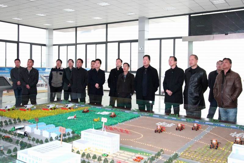 楊德義一行實地考察了龍亢農場雁湖糧庫、農業物聯網應用指揮中心、農業社會化服務中心、農機大院和通和地產龍亢公司,著重聽取了農服業務拓展情況介紹。