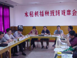 與會同志在大壙圩農場領導及有關同志的陪同下, 實地察看了該場七分場、六分場機械化插秧現場, 了解了機插秧的技術特性及要求。聽取了徐成銀場 長有關水稻機插秧試驗項目實施情況的匯報。大壙 圩農場是農業部確定的“機械化插秧重點示范 場”,今年購置插秧機10臺,示范推廣機插秧面積 2000畝,涉及四、五、六、七4個分場33戶家庭農 場。為了調動廣大職工對機插秧試驗推廣工作的積 極性,農場采取一系列優惠政策。目前,整個試驗 實施情況較好,達到了預期的效果。通過參觀和聽 取匯報,與會同志啟發和感觸很大,分別談了各自 的體會及對機插秧推廣前景的看法,并就有關技術 問題向廠家代表進行了咨詢。程軍副總經理對機插 秧成本及效益進行了測算,并要求廠家代表能具體 提供相關技術參數,為機插秧在農墾大面積推廣提 供技術保證。
