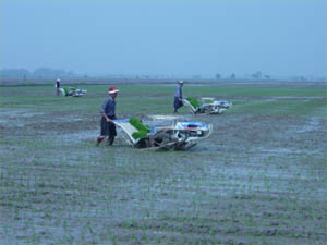 大壙圩農場是農業部確定的“機械化插秧重點示范 場”,為了使項目真正落到實處,農場加大工作力 度,采取得力措施,一是對所購十臺插秧機,按實 際到場價格的50%%優惠折價給購機戶;二是對參加機 插秧試驗示范的家庭農場按每畝50元給予一次性補 貼。目前農場職工示范推廣機插秧的積極性很高。 自6月18日開始,農場2000畝試驗推廣面積已開機栽 插,圖為六分場機插秧現場。(大壙圩農場 楊 朝幸)
