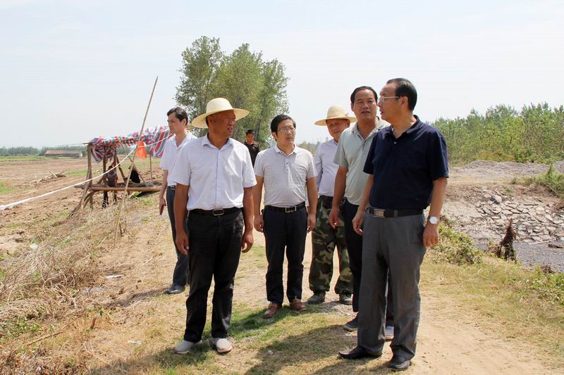 30日下午,李卓民先后走上華陽河一場、五場、四場大堤,實地檢查了險工險段、大堤損壞、閘站運行等情況。次日上午,李卓民與農場領導班子舉行座談,聽取了災后生產恢復、險工險段處理、農田水利建設規劃、種植結構調整、農業服務“