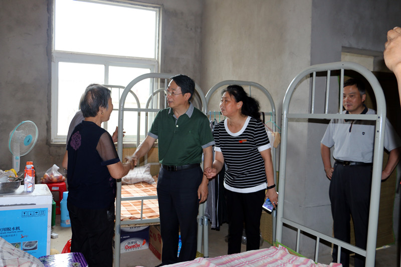 7月10日上午,劉超首站抵達敬亭山茶場,現場檢查了青草湖分場防汛責任段水位、人員上堤值守巡查、電站防汛設備運行情況,以及青草湖酒業公司等單位災情,集團農水科技部、財務部主要負責人和皖墾茶業董事長張國祥、總經理劉盛旭及敬亭山茶場領導等隨行。劉超仔細詢問了該場安全度汛的準備工作和防汛措施,詳細了解了近期降雨量變化,并一一問候奮戰在一線的防汛人員,為他們加油鼓勁。劉超一行還到周王分場轉移安置點,看望慰問了受災職工群眾,一再叮囑皖南墾區隨行的負責同志:困難時期,一定要不辭辛苦地做好服務,讓每一位轉移來的群眾都能吃得飽、睡得安。